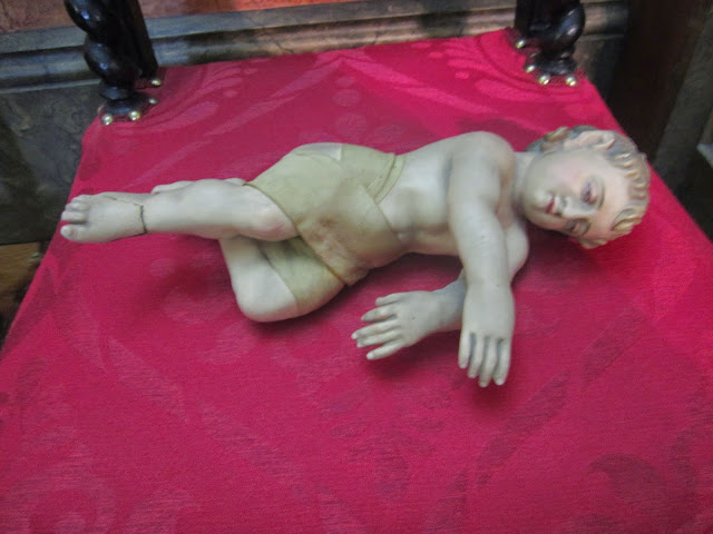 “Nos Meninos Jesus, vincam-se as proporções cunhadas e rebaixadas: são iguais a altura da raiz do pescoço ao púbis e deste aos pés. As anatomias rechonchudas; o ventre proeminente; as coxas exageradamente roliças, femininas. As nádegas, pelo contrário, minúsculas e apertadas, parecem contraídas...” – assim descreve Willy Godenne.